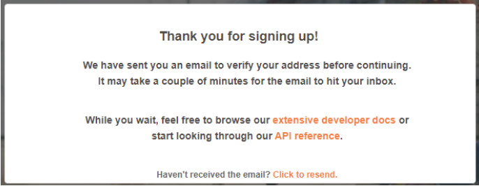 The subsequent screen is for developers, but even though you will not be using your own app, you need to click the Create A New App button to get a sandbox project created.