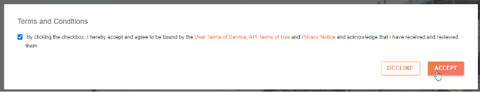 - After you click the Verify Email button, you will be asked to accept the terms and conditions: